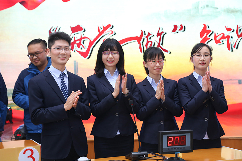 競賽共分為必答題、搶答題和晉級題三個環(huán)節(jié)。第一輪必答環(huán)節(jié)過后,八支隊伍分數持平、難分高下。搶答環(huán)節(jié)讓比賽真正進入高潮,選手們對黨章黨規(guī)、習總書記系列講話及公司各項規(guī)章制度了然于胸,不僅是業(yè)務上的精兵,也是黨建知識的強將。