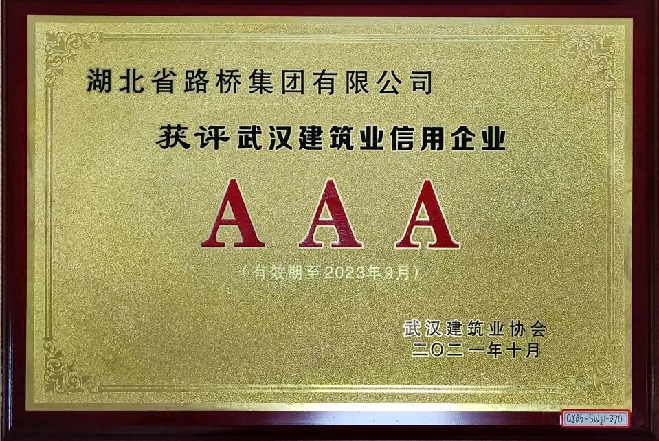 2021年武漢建筑業(yè)信用企業(yè)等級(jí)證書(信用等級(jí):AAA)