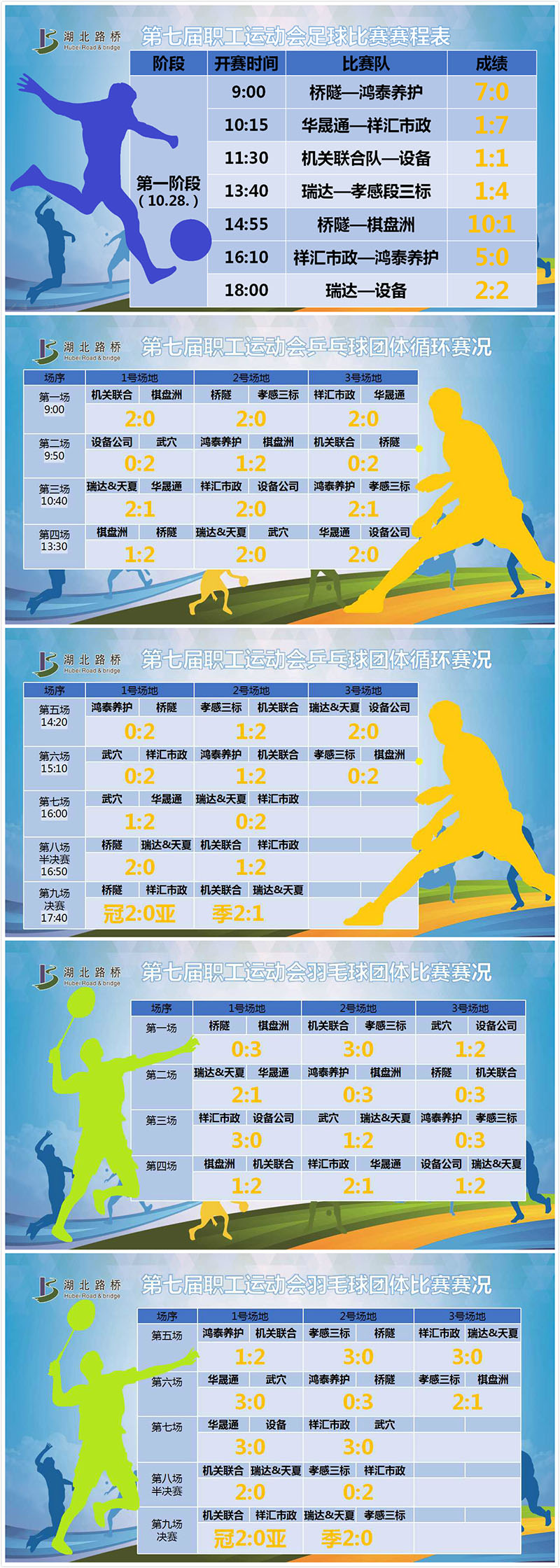 金秋十月寓意收獲,活力路橋演繹精彩。10月28日上午,路橋集團第七屆職工運動會在公司足球場隆重開幕。路橋集團黨委書記、執行董事、總經理周俊,特別"來"賓梓山湖公司總經理黃宗遠,路橋集團常務副總經理丁峻,黨委副書記、紀委書記、副總經理劉祖雄,副總經理潘新平,副總經理李高磊,財務總監余瑞華及營銷總監龔勇出席開幕式,來自集團本部、分子公司和直屬項目10支隊伍,共200多名運動員及裁判參加了開幕式。