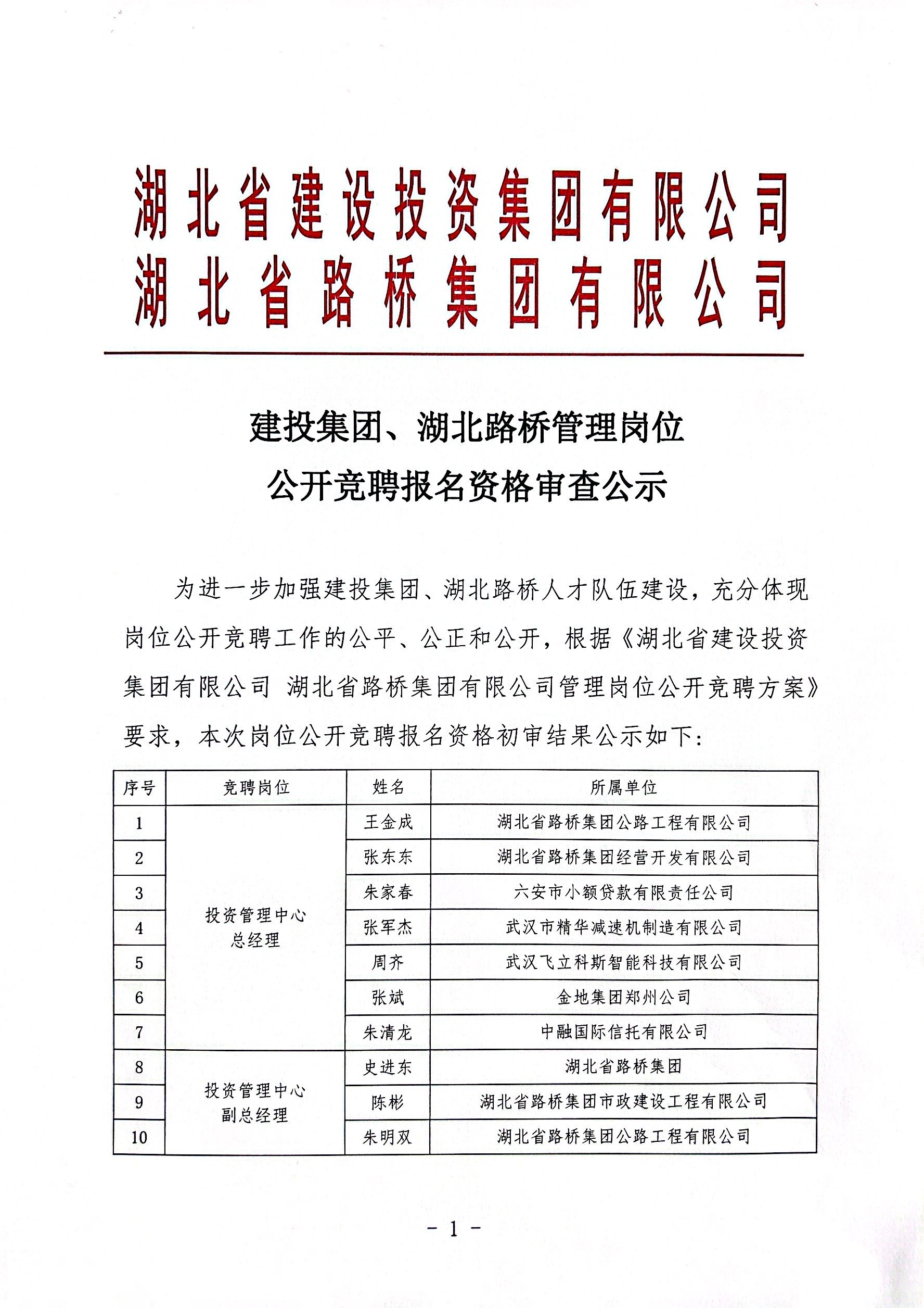 建投集團(tuán)、湖北路橋管理崗位公開競聘報名資格審查公示