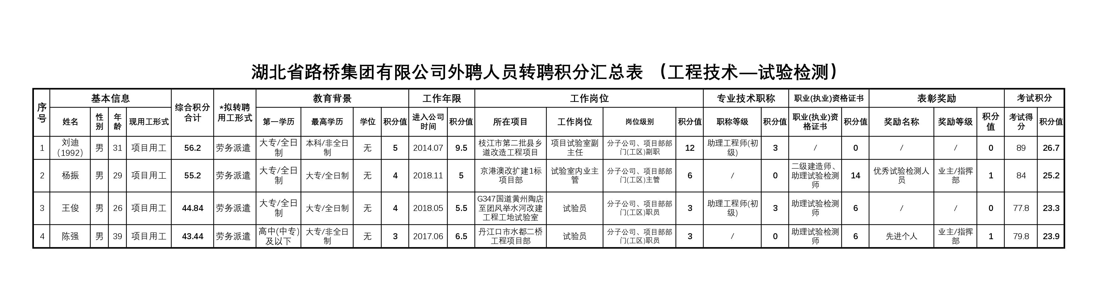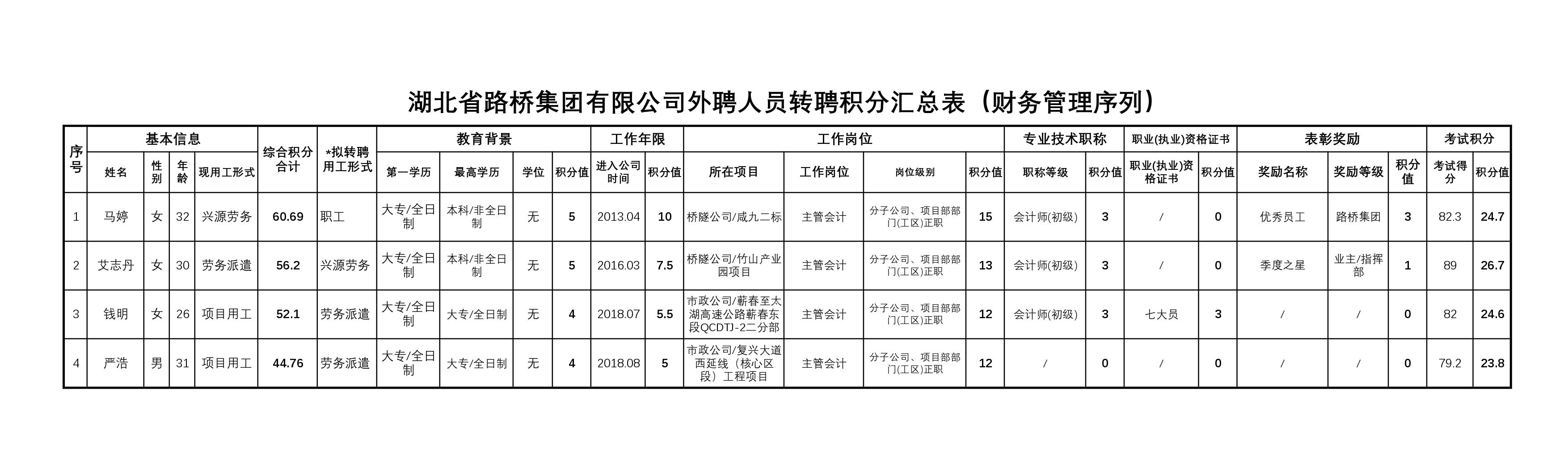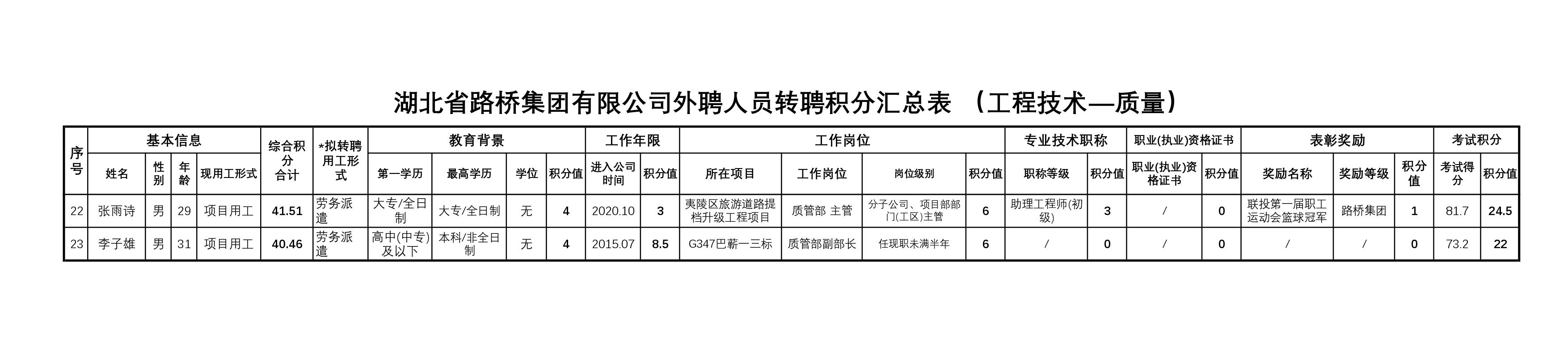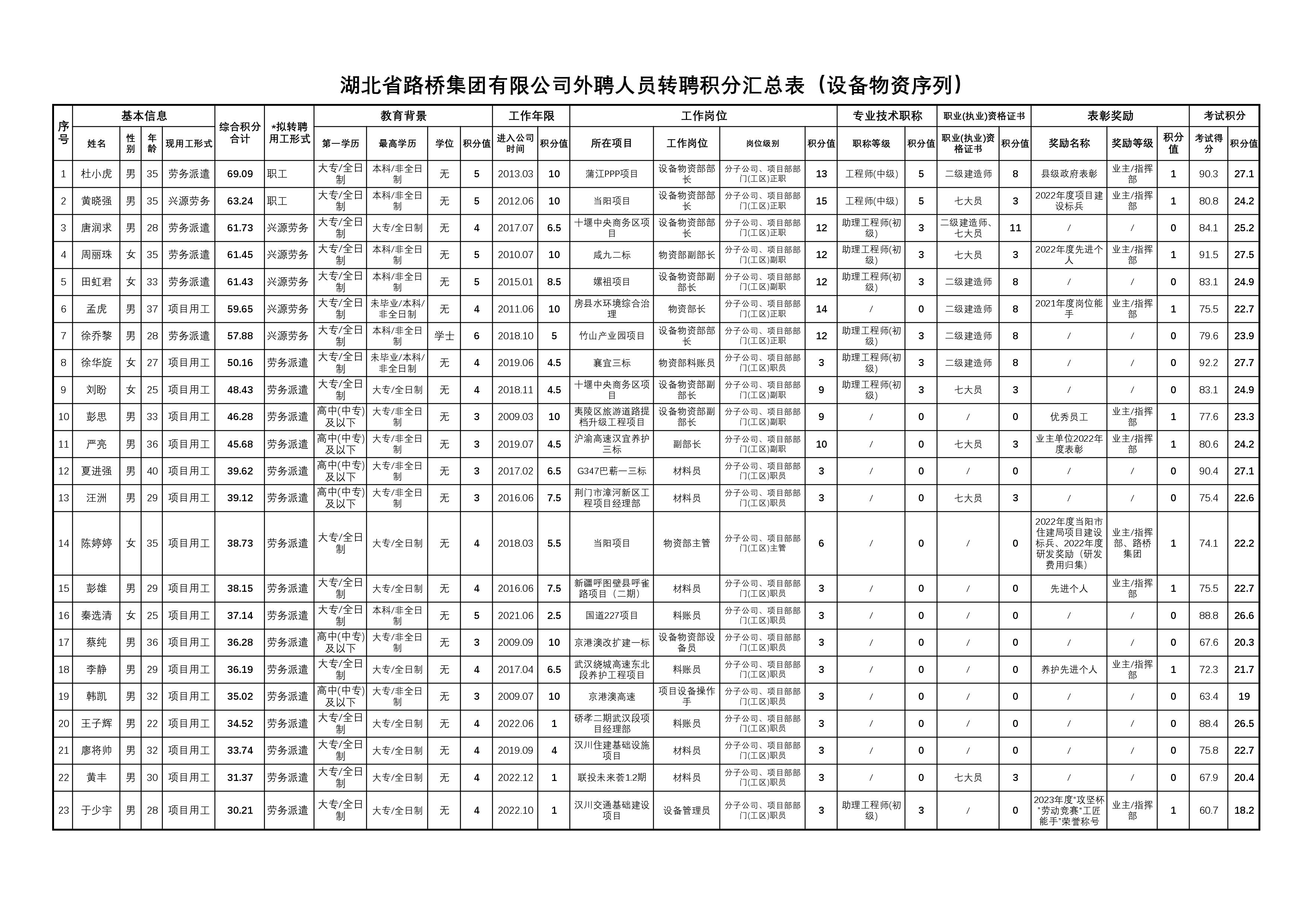 湖北省路橋集團有限公司2023年擬轉聘人員公示