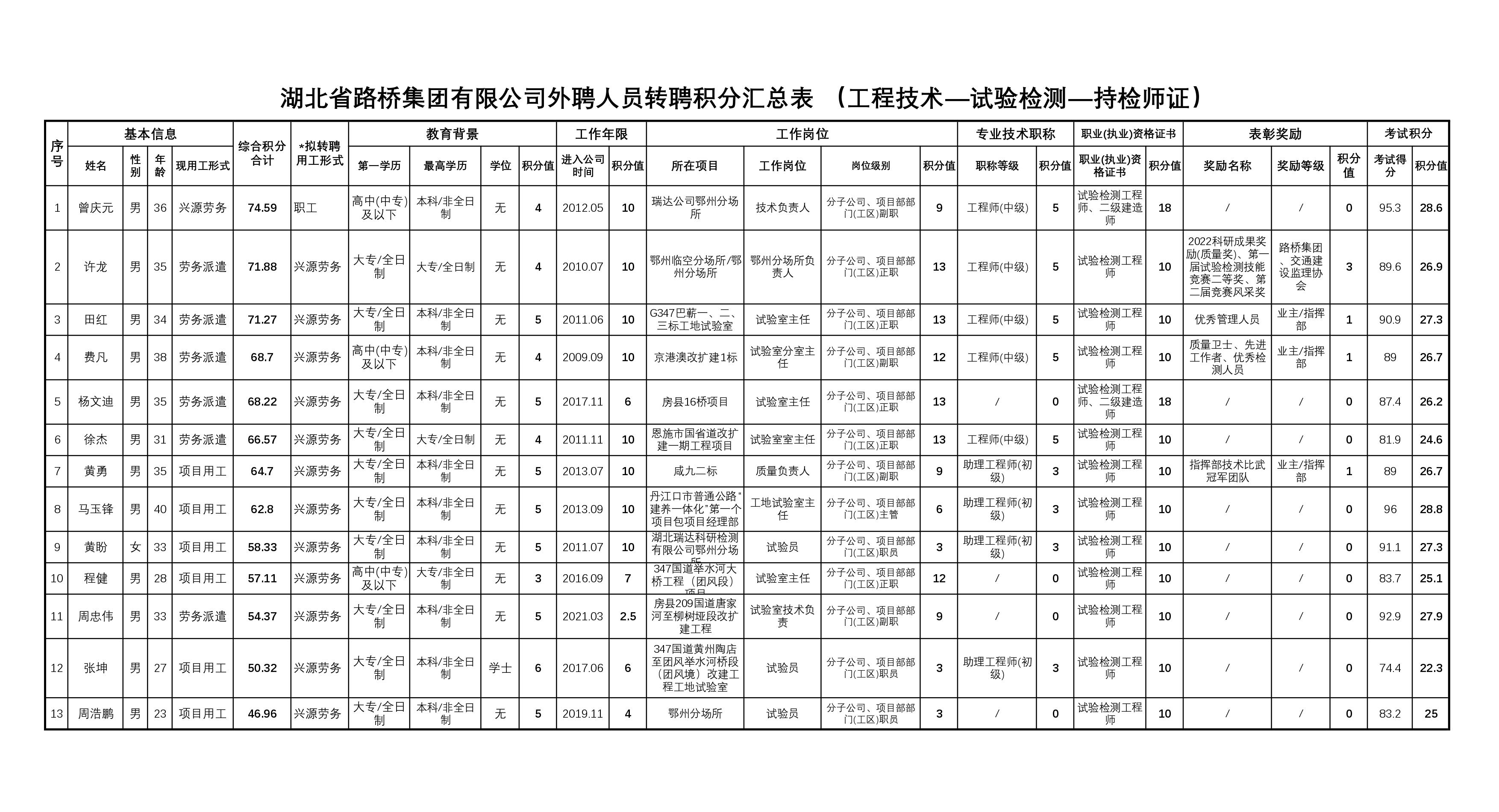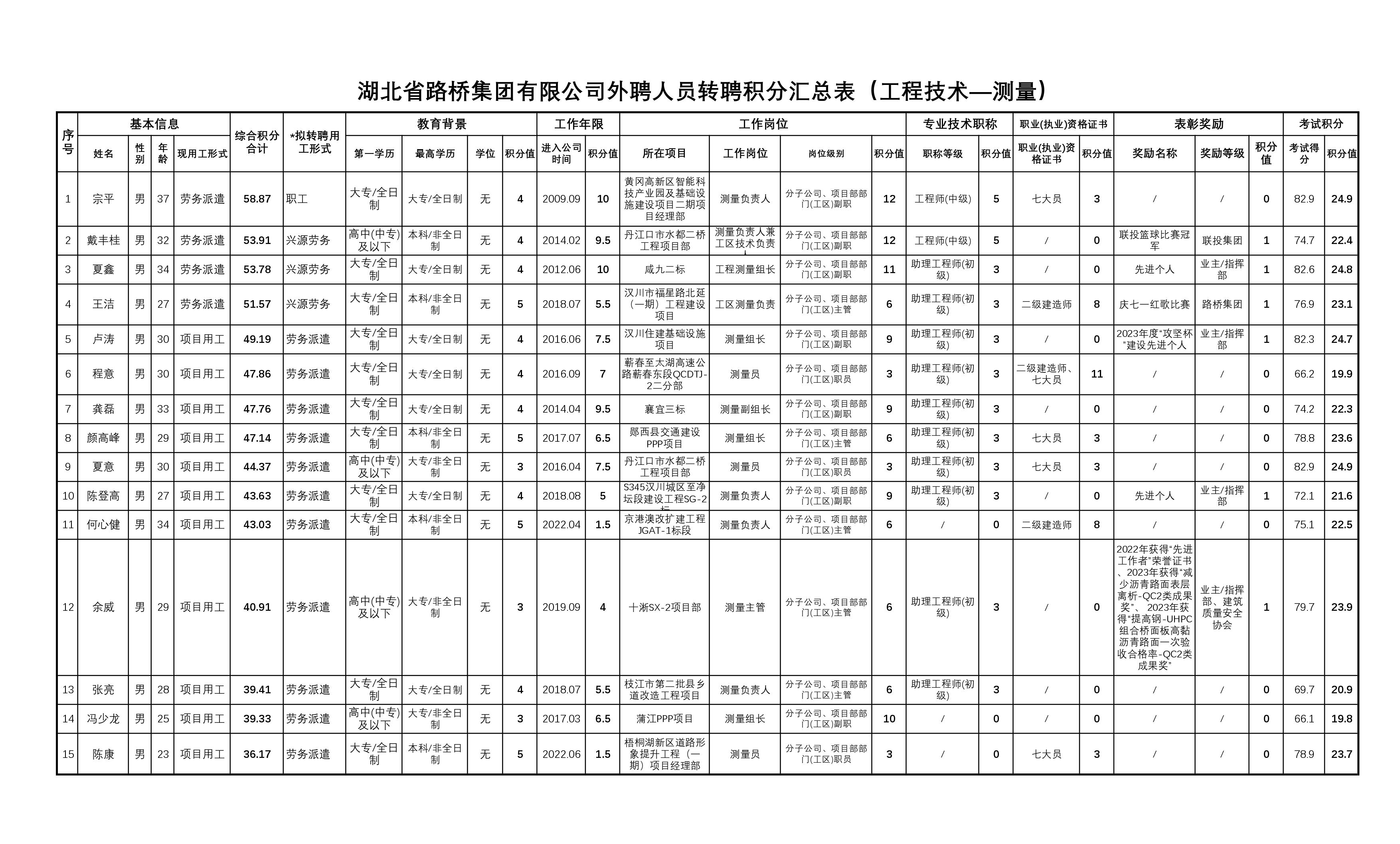 湖北省路橋集團有限公司2023年度擬轉聘人員補充公示