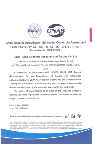 近幾年,湖北路橋瑞達檢測公司積極致力于探索新賽道,持續加強軟硬件能力建設。此次取得CNAS實驗室認可證書,標志著瑞達檢測公司實驗室的硬件設施、軟件條件及檢測能力均達到國際認可水平,有效提升了瑞達檢測公司在檢測行業內的核心競爭力。湖北路橋瑞達檢測公司將繼續以匠心踐行初心,持續推進質量管理體系建設,不斷培育新質生產力,塑造發展新優勢,為企業改革轉型發展貢獻力量!