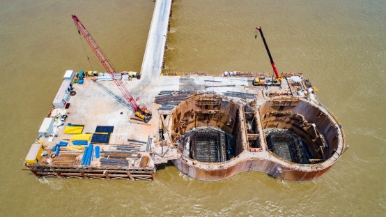 雙壁鋼圍堰是深水基礎施工常用的圍堰形式,具有剛度大、作業空間大等特點,能夠適用更大的水深。圍堰的尺寸及高度應根據基礎尺寸及放樣誤差、墩位處河床標高、圍堰下沉深度和施工期間可能出現的最高水位高程以及浪高等因素確定,需進行專門設計,確保其強度、剛度及穩定性滿足要求。