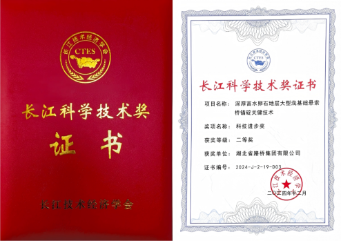 近日,長江技術經濟學會公布了2024年度長江科學技術獎結果,經過評委專家們層層評選,湖北路橋《深厚富水卵石地層大型淺基礎懸索橋錨碇關鍵技術》脫穎而出,榮獲長江科學技術獎“科技進步獎”。