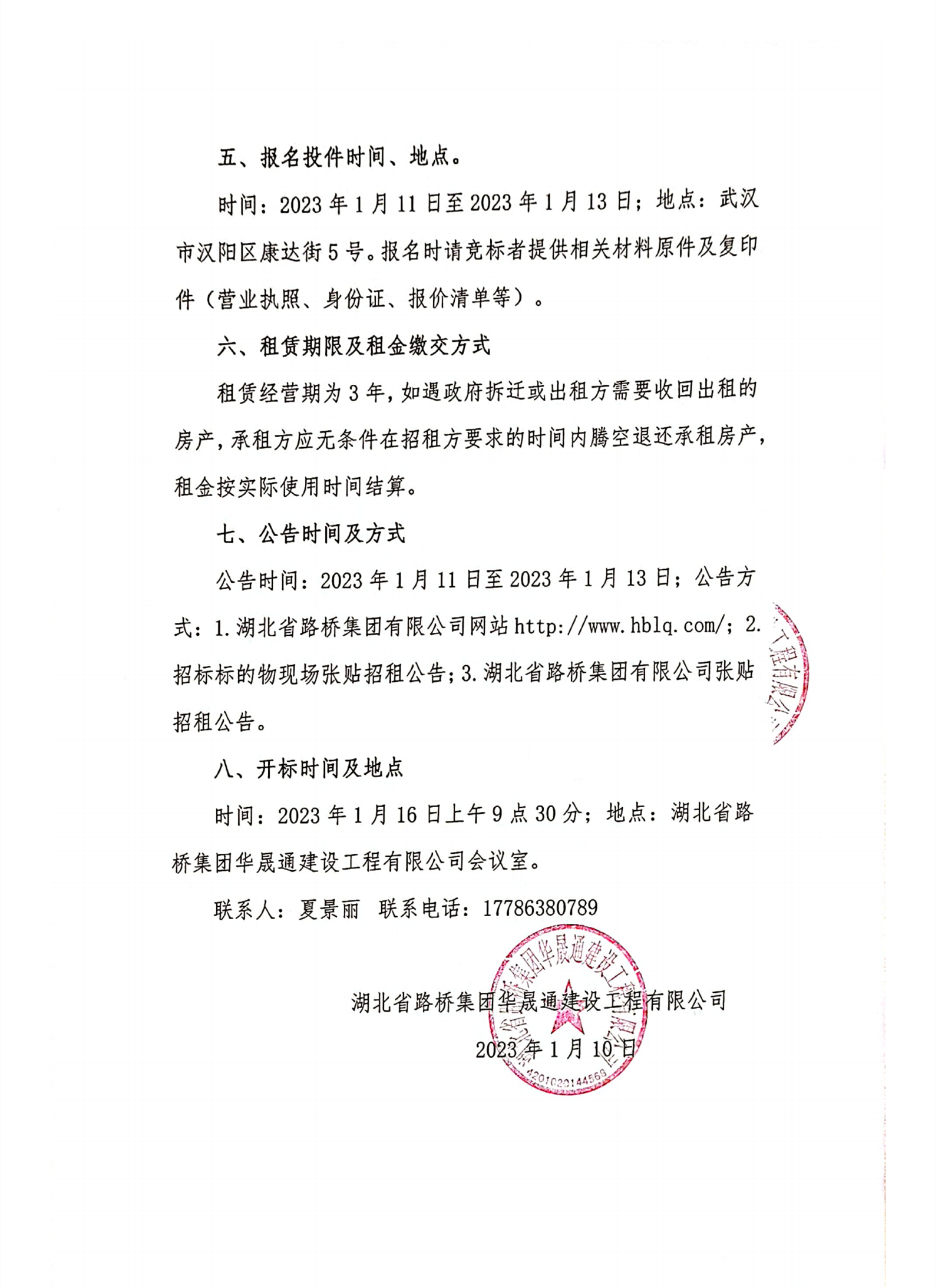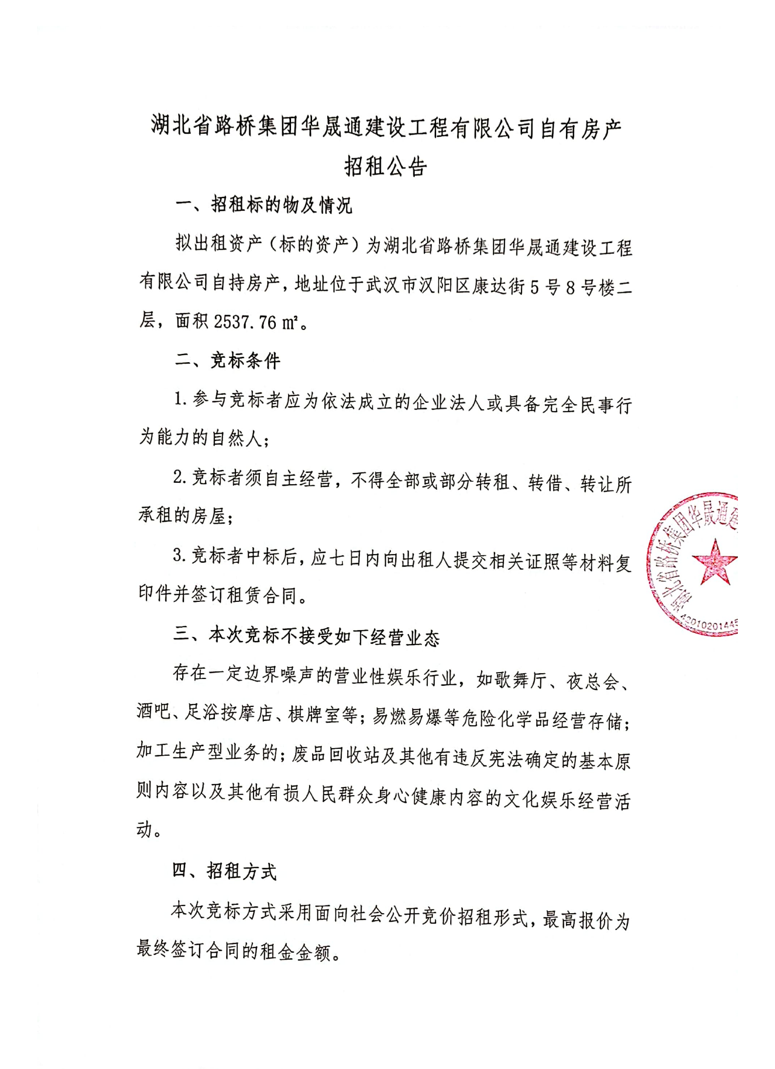 湖北省路橋集團華晟通建設工程有限公司自有房產招租公告